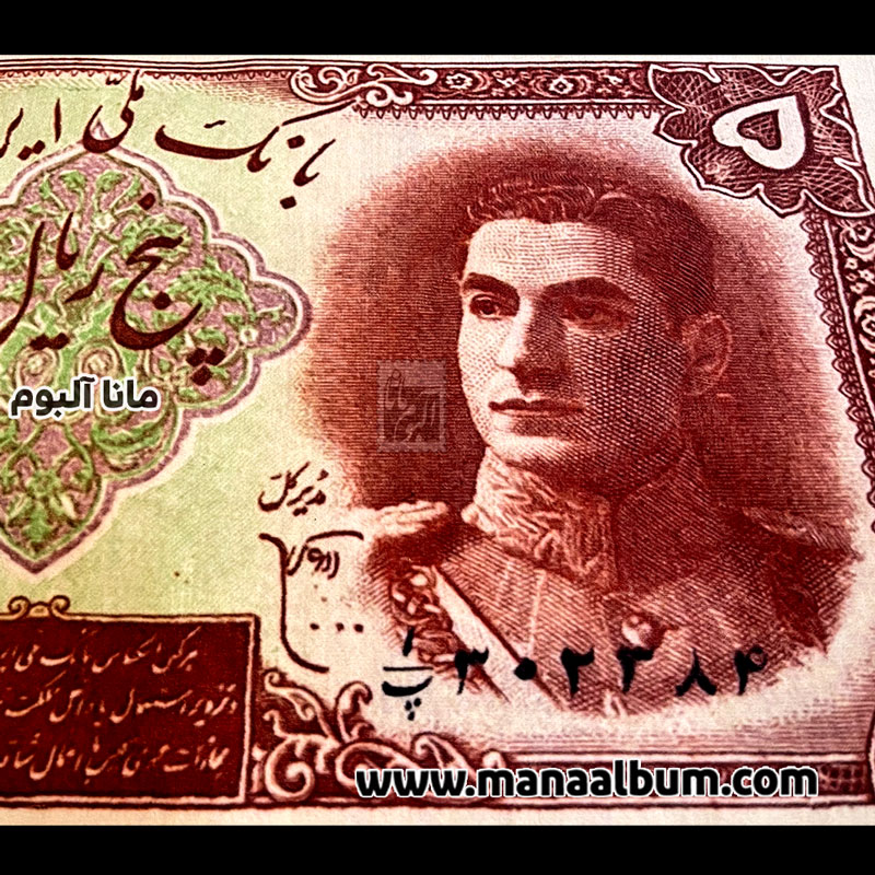 تصویر : اسکناس 5 ریال محمدرضاشاه