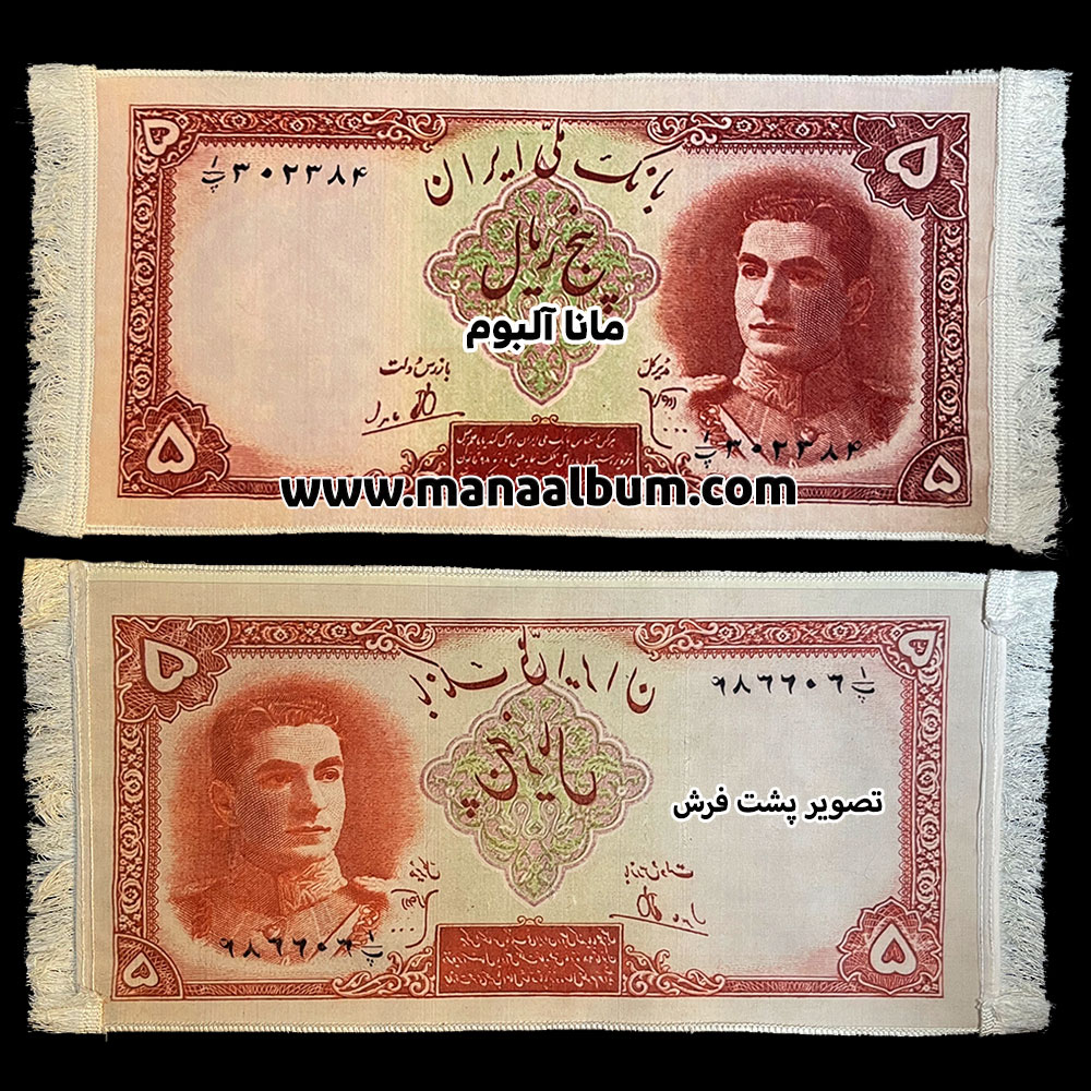 تابلوفرش اسکناس 5 ریال محمدرضاشاه 20*40